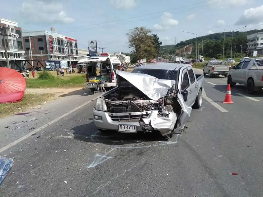 ขณะที่สภาพในที่เกิดเหตุรถกระบะที่พุ่งชนจอดอยู่กลางถนน ด้านหน้าซ้ายพังเสียหาย ซึ่งมีนายอภิวิชญ์ ศรีลาโพธิ์ อายุ 34 ปี เป็นคนขับ และภรรยานั่งมาด้วย ทั้ง 2 คนได้รับบาดเจ็บเช่นกัน ส่วนรถกระบะโดยสารสองแถวถูกชนจนกระเด็นพุ่งลงไปอยู่ในคูริมถนน ซึ่งมีนายดอเล๊าะ หวังบือซา อายุ 52 ปี เป็นคนขับ และปลอดภัยเช่นกัน