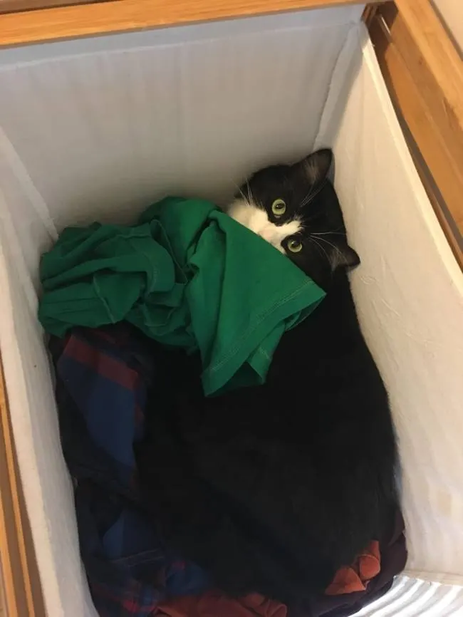 และไม่มีอะไรทำให้มันพอใจได้เท่ากับการได้งีบหลับในตะกร้าผ้า มันชอบเข้าไปนอนในนั้นมากทีเดียว