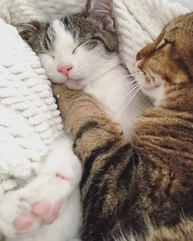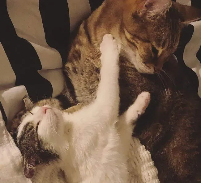 Diddy ไม่เพียงแต่มีของเล่นมากมาย แต่มันยังมีเพื่อนแมวที่อาวุโสกว่าคอยดูแลและคอลเคลียด้วยเวลานอนหลับพักผ่อน