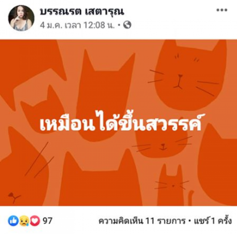 ทั้งนี้เมื่อเข้าไปดูในเฟซบุ๊ก บรรณรต เสตารุณ ซึ่งเป็นเฟซบุ๊กของครูเกิด มีการโพสต์คล้ายเป็นลางก่อนหน้าที่จะจากไปเมื่อวันที่ 4 มกราคม 63 ก่อนที่ครูแก้วจะเกิดอาการ หัวใจล้มเหลวเฉียบพลันโดยครูแก้วได้โพสต์ว่า เหมือนได้ขึ้นสวรรค์ หลังจากนั้นก็ยังคุยกับเพื่อนๆปกติจนมาเกิดเหตุเศร้าขึ้นหลังจากนั้นเพียงไม่นาน