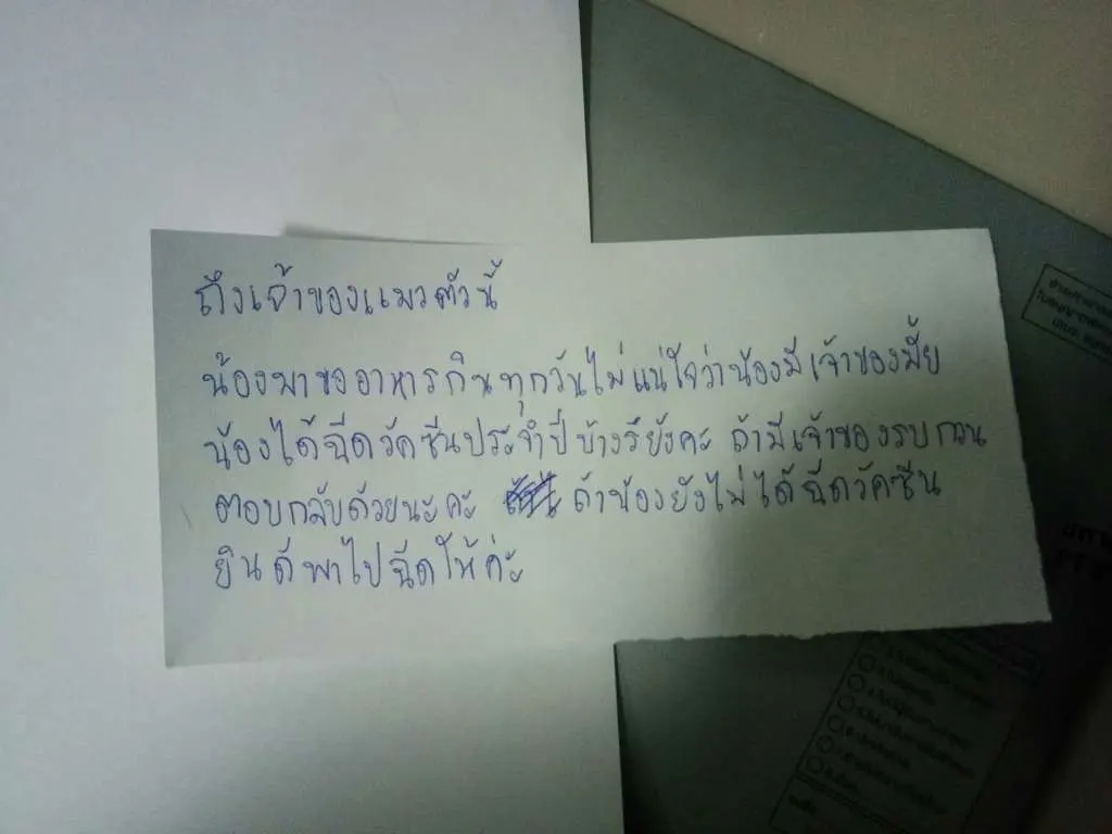 มุงหลอกตรูเกือบสำเร็จละนึกว่าแมวน้อยถูกเจ้าของทอดทิ้ง ดีนะที่ฉลาด เมื่อวานเขียนจดหมายน้อยสีขาวติดปลอกคอมุงไป