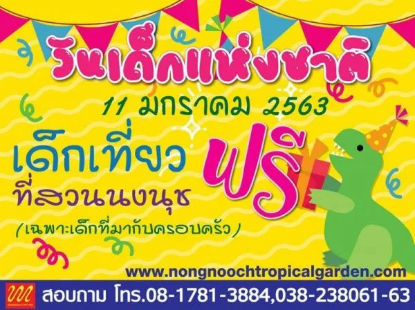 เข้าฟรี จัดความสุขเต็มอิ่มตลอดวันด้วยเวทีการแสดงพร้อมกิจกຮຮมมากมาย ให้น้องๆ หนูๆ ได้ร่วมสนุกพร้อมรับของรางวัลสุดพิเศษจากสวนนงนุช พิเศษ เด็กๆ ที่มาสวนนงนุชพร้อมกับผู้ปกครองในวันเด็ก เด็กเข้าชมสวนสวยฟรี แต่ผู้ปกครองค่าเข้าชมปกตินะคะ ฟรีแค่เด็กๆจ้า
