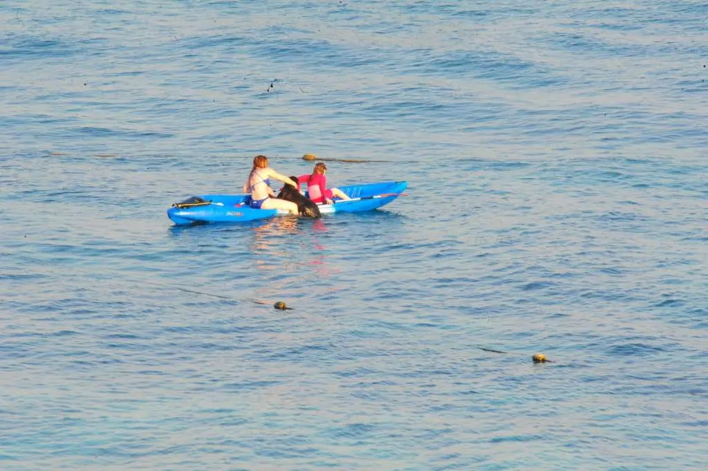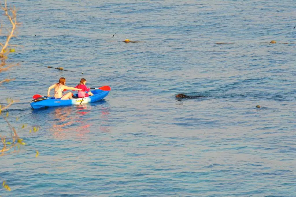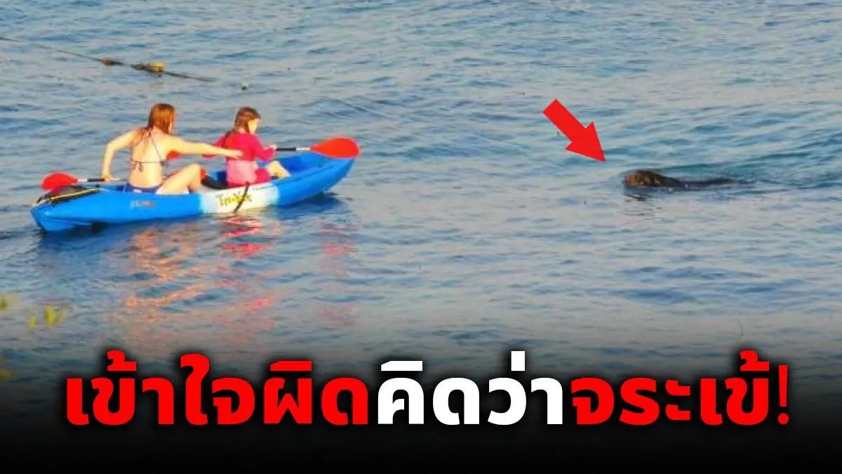 สาวตื่นเต้นสุดขีด นึกว่า จระเข้ ว่ายน้ำอยู่กลางทะเล ก่อนมีชาวต่างชาติพายเรือเข้าไปใกล้ๆ