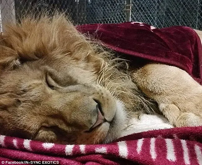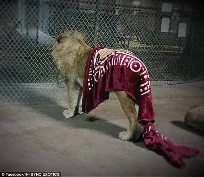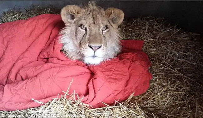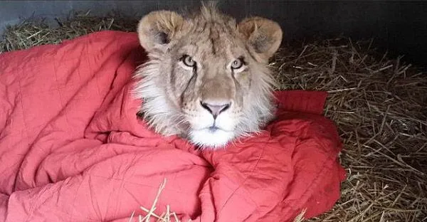 สิงโตแอฟริกาผู้ติดผ้าห่มเป็นชีวิตจิตใจ ไม่ว่าจะไปไหนต้องเอาไปด้วยทุกที่