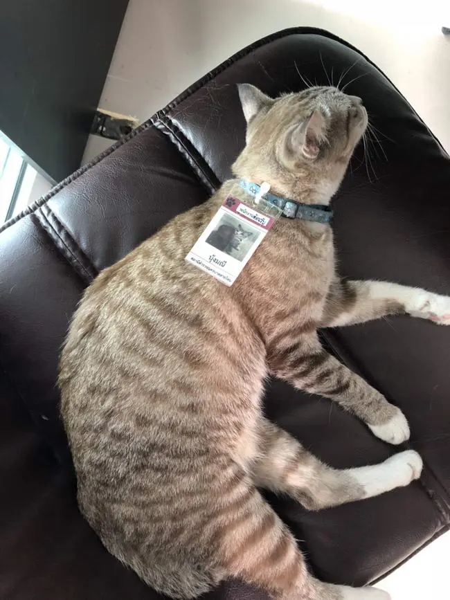ซึ่งทางคุณตำรวจเคยได้รับข้อมูลว่าน้องมีปัญหาเพราะว่าความน่ารัก จึงมีคนจะอุ้มน้องกลับไปบ่อยๆ และที่ผ่านมาครอบครัวของนุ้งมณีก็โดนอุ้มไปจกพุงแล้วเช่นกัน จึงทำให้จนท.ของโรงพักจัดทำปลอกคอให้น้องซะเลย เดี๋ยวแขกไปใครมาจะทนไม่ไหวอุ้มนางไปอีก จะโดนตั้งข้อหา ลักของหลวงเอาได้