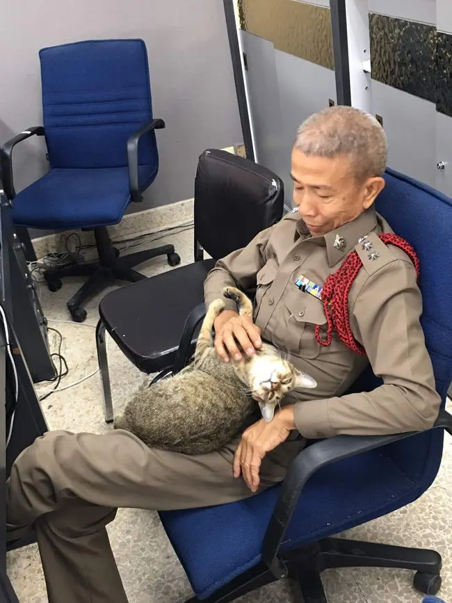 อีกหนึ่งแฟนเพจชวนติดตามของบรรดาเหล่าทาสแมวที่สร้างขึ้นเมื่อประมาณหนึ่งเดือนที่แล้ว แต่ตอนนี้มีคนติดตามมากเกือบหนึ่งหมื่นคนก็คือ “แมวโรงพัก” ซึ่งมีแมวมากหน้าหลายตา แต่ว่ามีสองแมวลายสลิดที่คอยสร้างสีสันและเสียงหัวเราะให้ไม่เว้นแต่ละวัน ก็คือ “นุ้งมณีสายไหม” กับ “พี่ลาย” นั้นเอง