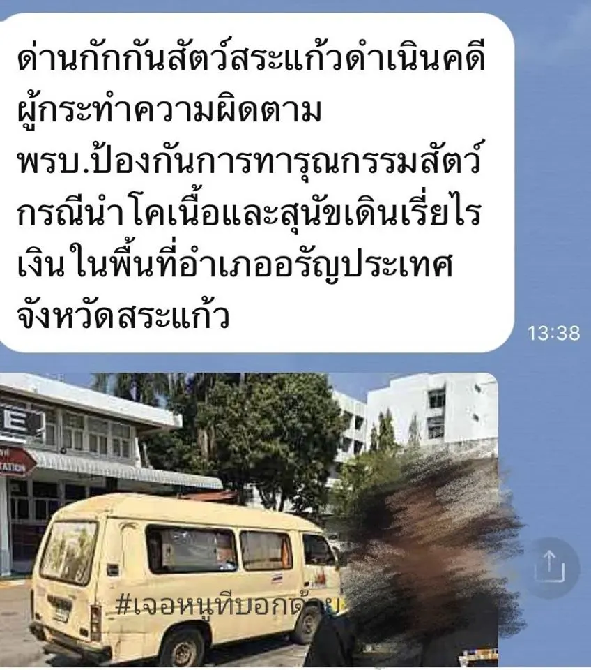 ทั้งนี้ในเฟซบุ๊ก ธัญณิชา เจ ปภาณัฐกานต์ ระบุว่า น้ำจิ้มไปก่อนค่ะ เดี๋ยวมายาวๆ09/01/63 11.45 ณ สวนกาญจน์ฯขอบคุณ ….กองสารวัตรและกักกันและด่านกักกันสัตว์อรัญประเทศกองสวัสดิภาพและสัตว์แพทย์บริการกรมปศุสัตว์สภ.อรัญฯอาสาสะกดรอย อาสาเฝ้า ฯลฯกำลังคุมตัวไป สภ. นะคะ รออัพเดทแป๊บบบยังไม่แท่กนะคะ รออัพเดททีเดียว