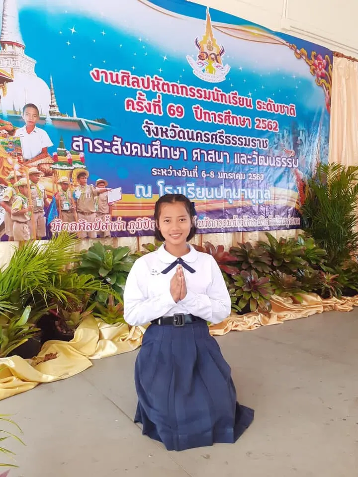 ครูถามจะให้ถอนตัวออกจากการแข่งขันหรือไม่ แต่นักเรียนผู้เพิ่งสูญเสียแม่และพี่น้องตอบว่า จะทำเพื่อแม่ พี่และน้อง ทุกคนคงจะมาให้กำลังใจ ยังมีสมาธิทำหน้าที่ร่วมกับทีมเข้าร่วมการแข่งสวดมนต์แปลไทย ในงานมหกรรมศิลปหัตถกรรมนักเรียนระดับชาติครั้งที่ 69 ปีการศึกษา 2562 ภาคใต้ ณ จังหวัดนครศรีธรรมราช เมื่อวันที่ 8 มกราคม 2563 ได้อย่างเต็มความสามารถจนสามารถคว้าเหรียญทองอันดับ 7 การฝึกปฏิบัติสวดมนต์คงมีส่วนสำคัญที่ช่วยให้เด็กควบคุมอารมณ์ความรู้สึก มีสมาธิที่ดีได้อย่างน่าชื่นชมแม้เพิ่งประสบเหตุการณ์เลวร้ายในชีวิต