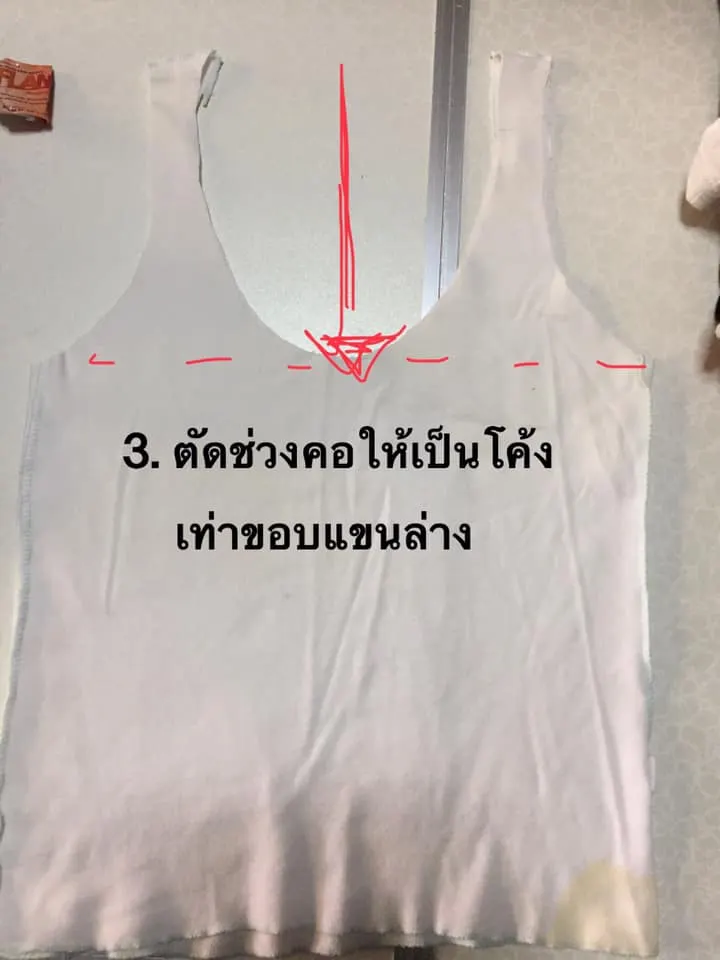 3.ตัดช่วงคอให้เป็นโค้ง เท่าขอบแขนล่าง