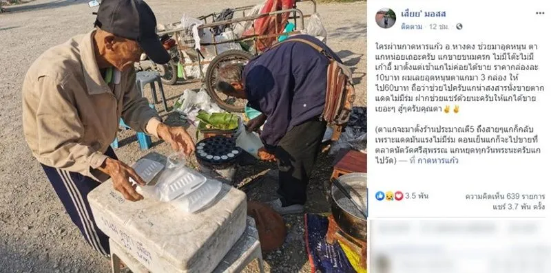 เรียกได้ว่าเป็นภาพที่ดูแล้วเศร้าใจอย่างมาก เมื่อผู้ใช้เฟซบุ๊กที่ใช้ชื่อว่า เสี่ยย’ มอสส ได้ออกมาโพสต์ภาพของคุณตาท่านหนึ่ง ที่ขายขนมครกตั้งเตาถ่านพร้อมกับรถพ่วงเก่าๆอยู่แถว กาดหารแก้ว อ.หางดง จังหวัดเชียงใหม่ โดยจากโพสต์นั้นได้ระบุว่า