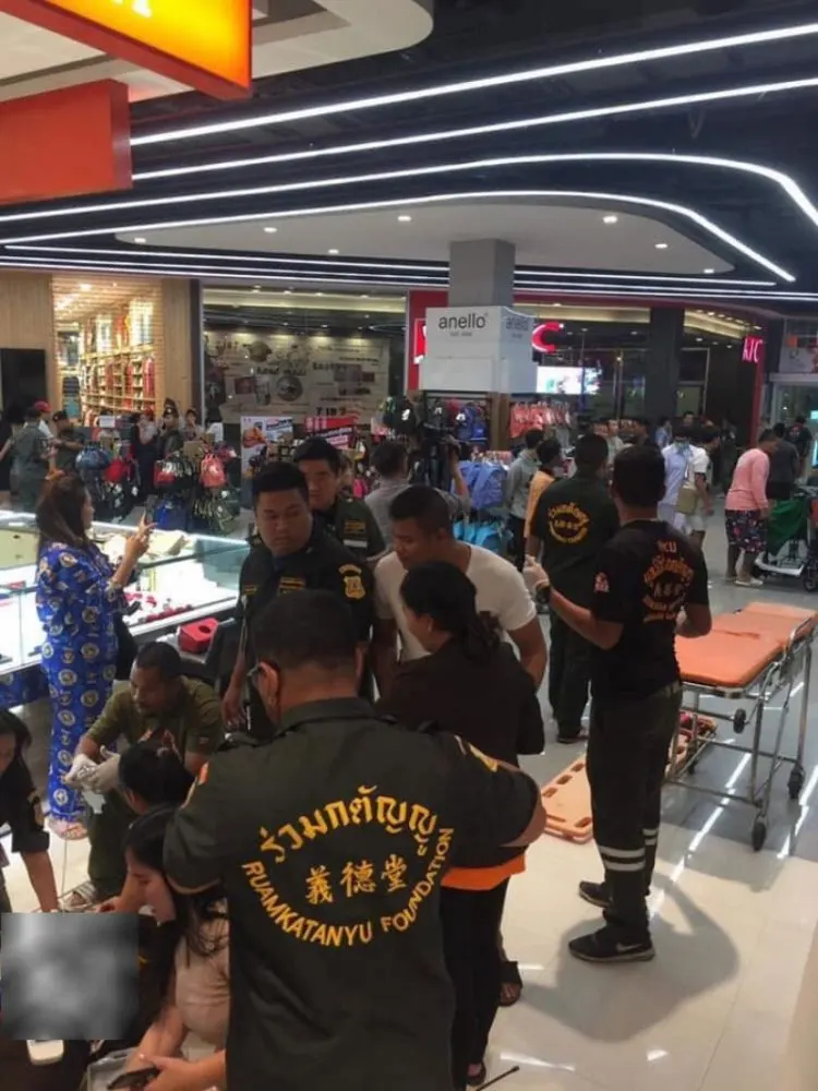 รวมทั้งพนักงานสาวร้านทอง ถูกยิงอาการสาหัส และลูกค้าที่เข้ามาเดินซื้อของภายในห้าง โดนลูกหลงได้รับบาดเจ็บ 5 ราย นอนเกลื่อนพื้นบริเวณหน้าร้านทอง ถูกนำตัวส่งโรงพยาบาลพระนารายณ์