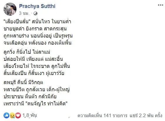 ล่าสุด เฟซบุ๊ก Prachya Sutthi โพสต์ข้อความระบุว่า