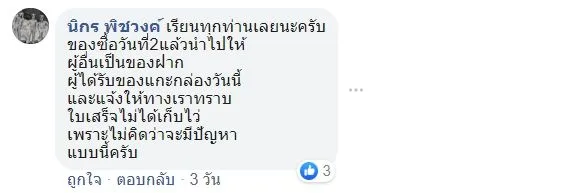 “เรียนทุกท่านเลยนะครับ ของซื้อวันที่2แล้วนำไปให้ ผู้อื่นเป็นของฝาก ผู้ได้รับของแกะกล่องวันนี้ และแจ้งให้ทางเราทราบ ใบเสร็จไม่ได้เก็บไว้ เพราะไม่คิดว่าจะมีปัญหา แบบนี้ครับ”