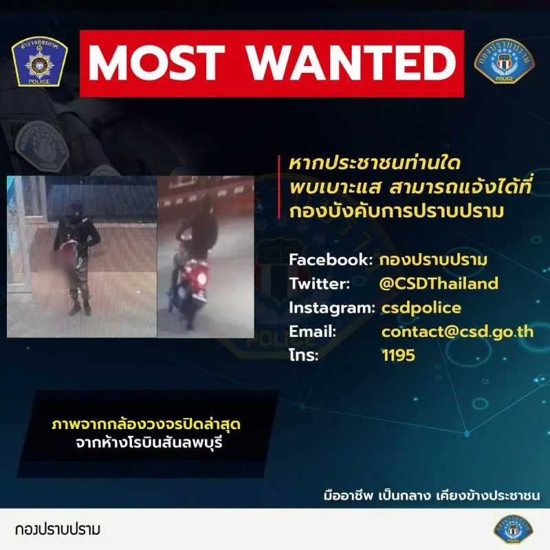 ด้านเพจ กองปราบปราม ได้โพสต์รายละเอียดเพิ่มเติม เพื่อให้ประชาชนได้ระมัดระวังพร้อมทั้งแจ้งเบาะแสว่า ตำหนิรูปพรรณคนร้าย เป็นชาย รูปร่าง สมส่วน สูงประมาณ 165 ถึง 170 เซนติเมตร ใช้รถจักรยานยนต์ ยามาฮาฟีโน่ สีแดง โดยคาดว่าจะใช้เส้นทางหลบหนี หนองโดน สระบุรี ท่าวุ้งลพบุรี ท่าเรืออยุธยา โทรศัพท์ในมือคุณ สามารถช่วยเราได้