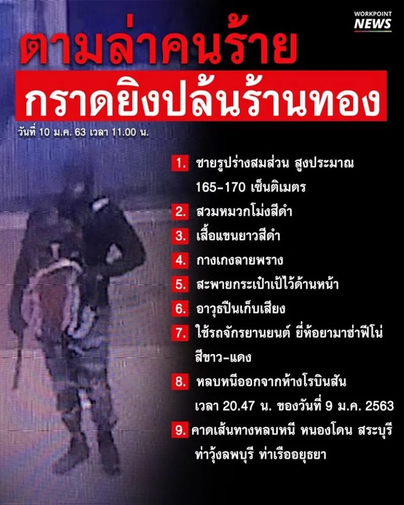 ทางด้านเพจ work point news ก็ได้โพสต์ภาพรูปพรรณของคนร้ายเช่นเดียวกัน