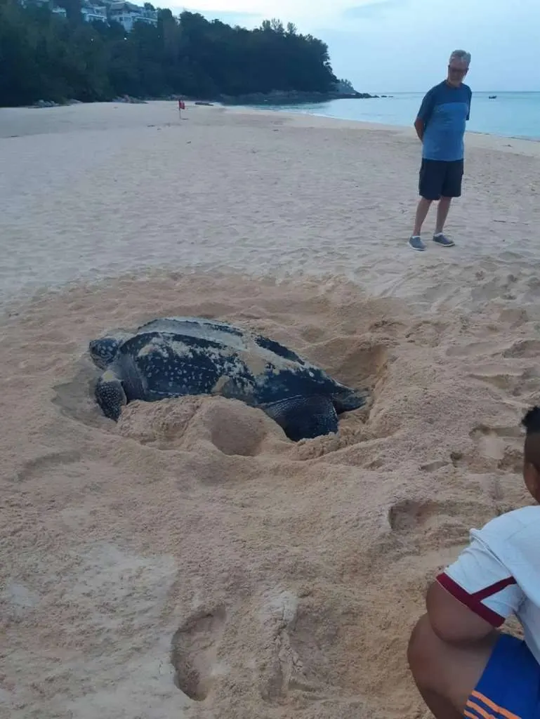 คนรักทะเลถูกใจสิ่งนี้ แม่เต่ามะเฟืองขึ้นมาวางไข่ที่หาดในทอน จ.ภูเก็ต