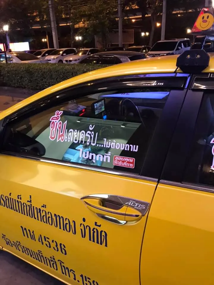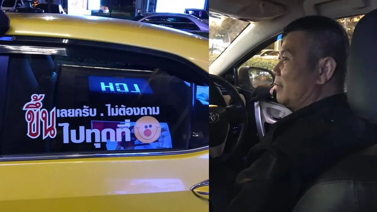 สาวขึ้นแท็กซี่เห็นป้ายติดข้างกระจก ลองเริ่มต้นบทสนทนาหลังจากนั้นได้ฟังแต่เรื่องราวดีดี