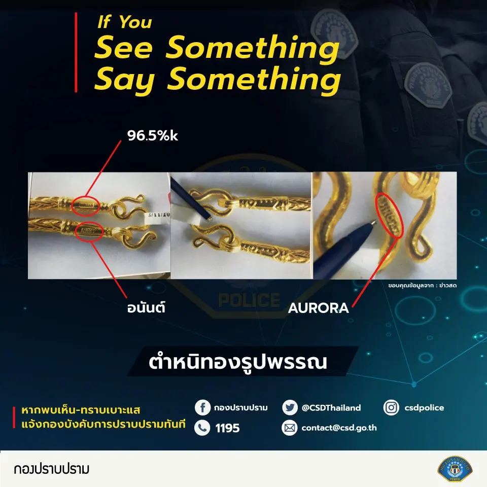 เพจ กองปราบปรามฯ!! โพสต์รายละเอียดในการสังเกตุ ทองของร้าน "aurora" ที่โจรเหี้ยมโหด ปล้นอุกอาจ