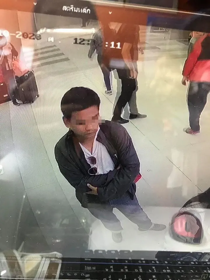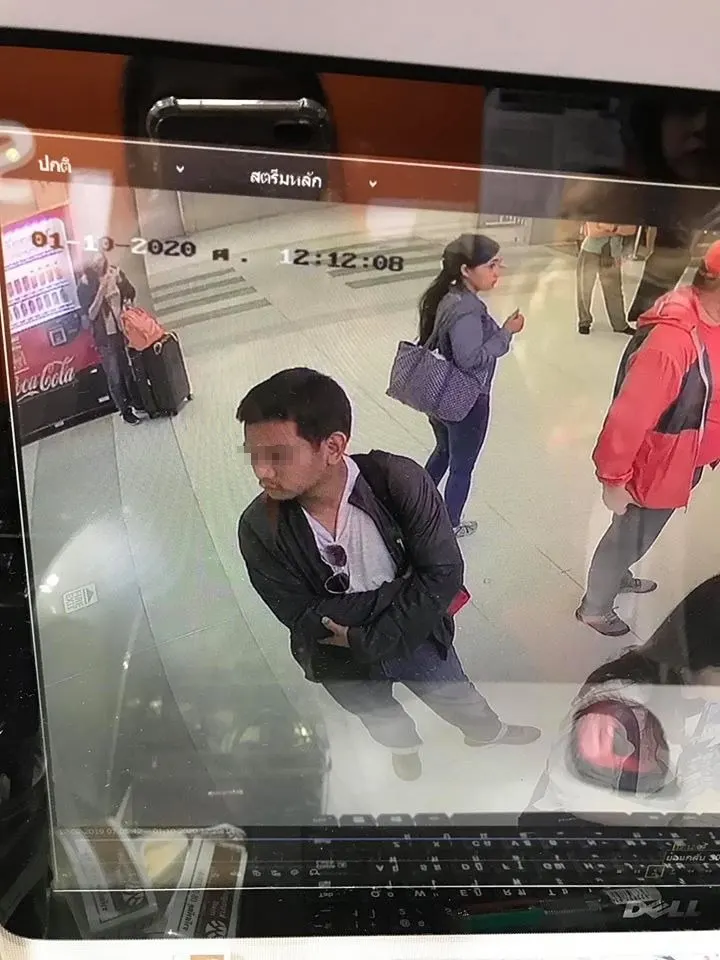 สามีกับเราไปยืนรอแลกเงินที่ซุปเปอร์ริชสีส้ม สนามบินสุวรรณภูมิ (ชั้นเดียวกับแอร์พอร์ทลิ้ง) ผู้ชายคนนี้ยืนอยู่ข้างหน้า พอแฟนเราลากกระเป๋าไป กระเป๋าเงินเราได้กระเด็นหล่นลงพื้น แล้วผู้ชายคนที่สะพายเป้สีแดงนี้ก็หันกลับแล้วใช้เท้าเตะออกไปเลย