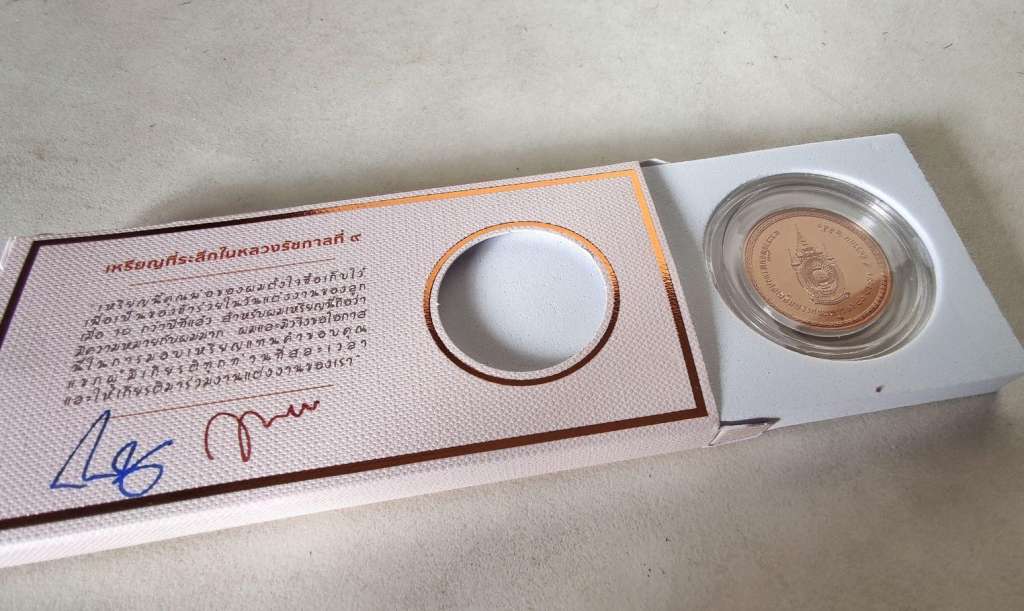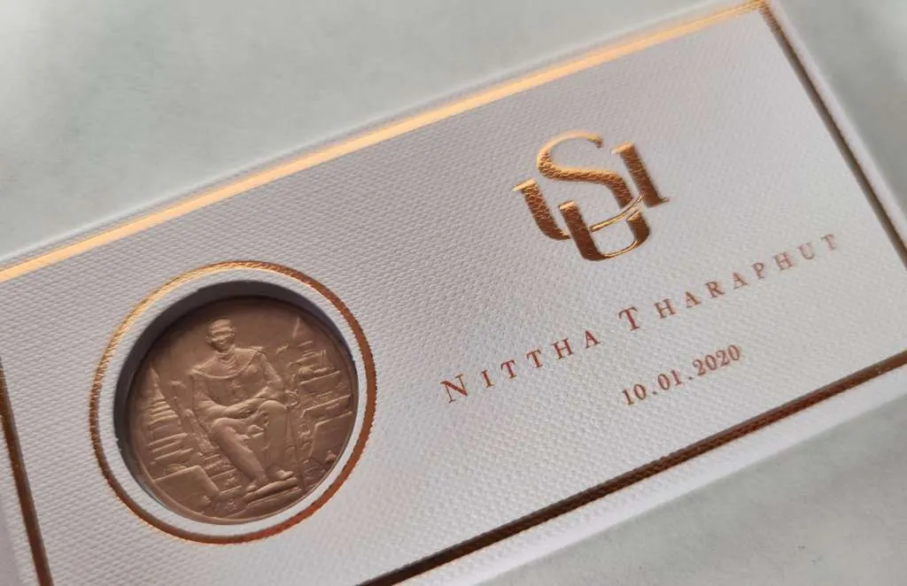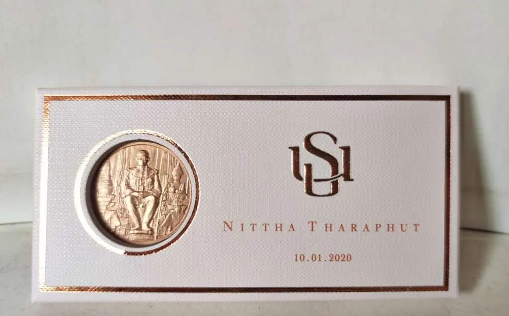 โดยของชำร่วยที่ทั้งสองตั้งใจมอบให้กับทุกคนนั้นคือ “เหรียญที่ระลึกในหลวงรัชกาลที่9” ที่ถูกบรรจุมาในกล่องกระดาษอย่างดี พร้อมมีข้อความเล็กๆ ที่บอกที่มาที่ไป ซึ่งมีคุณค่าทางจิตใจของทั้งคู่เป็นอย่างมาก