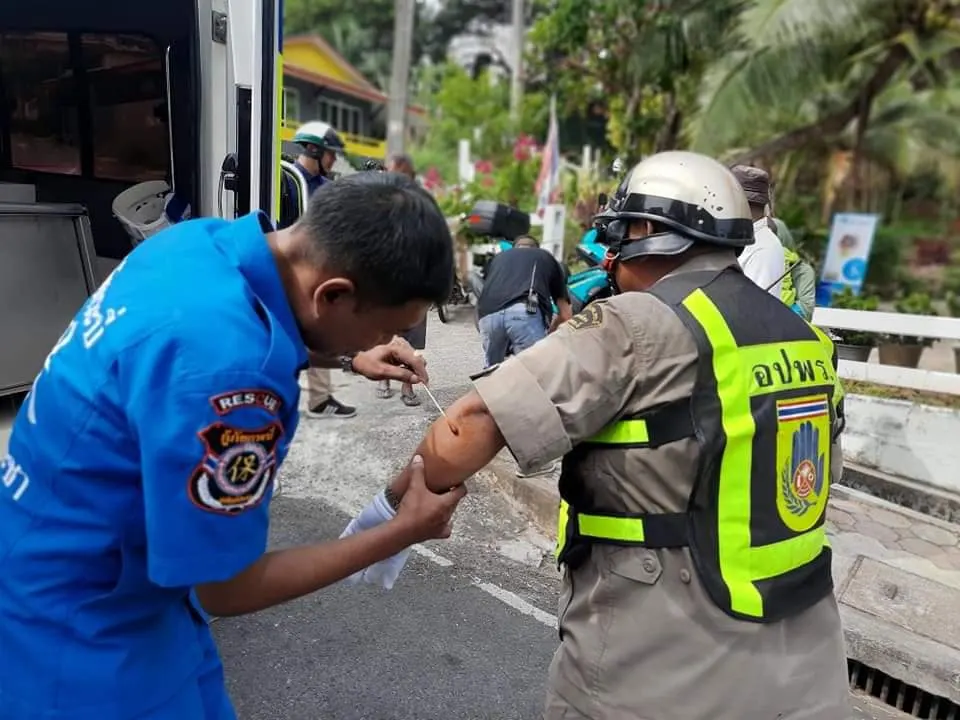 ดูชัดๆโฉมหน้า พี่อุ๊ อปพร.กระบี่ใจเด็ด ใช้ตัวเองเข้าขวางรถจยย.เบรคแตก
