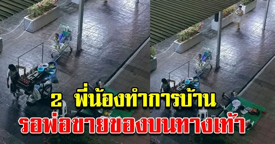 สองพี่น้องใฝ่เรียน ปู่เสื่อทำการบ้าน รอพ่อขายของบนทางเท้า