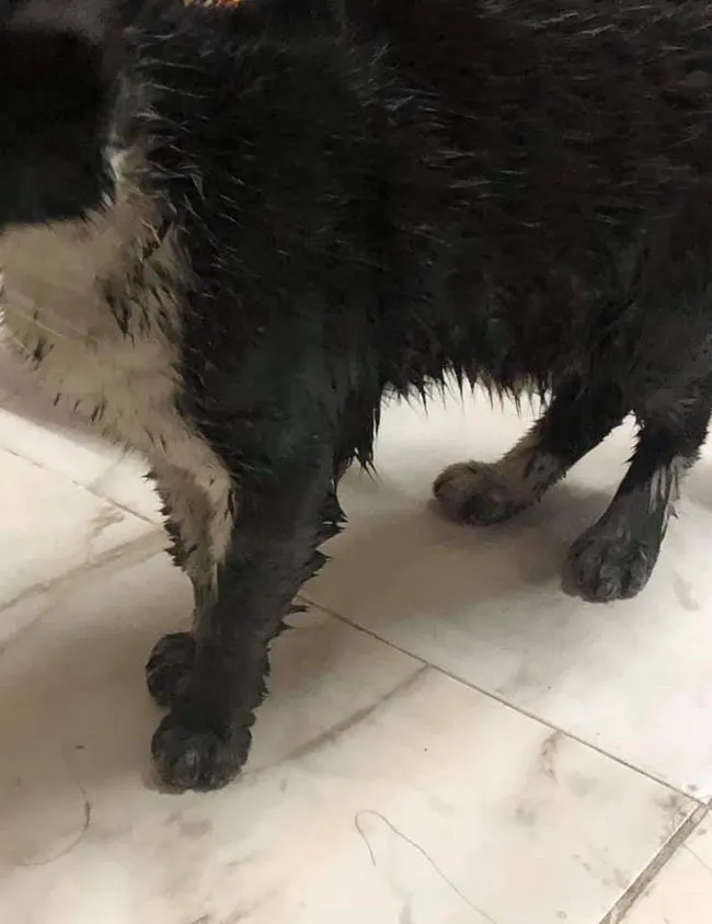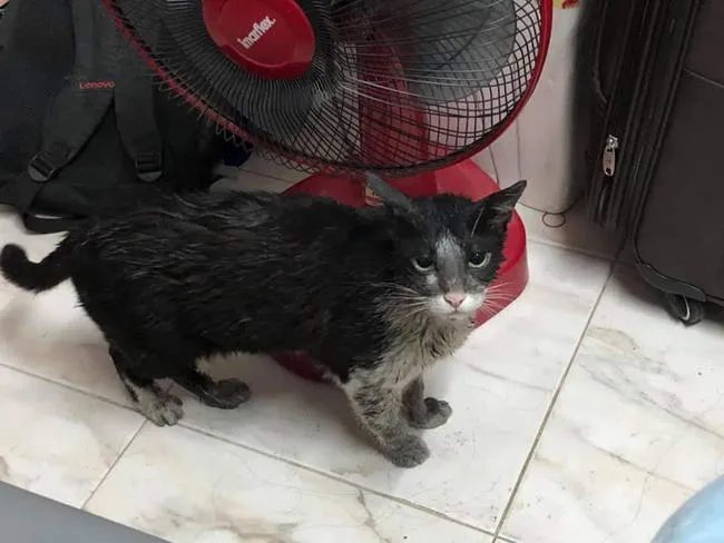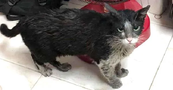 โดยเธอเล่าในกลุ่มทาสแมวว่า เช้าวันอาทิตย์ วันที่แม่เจอปลุกตอน 04:20 น. กลับมาตัวเหม็นมาก อยากจะให้ชาวทาสแมวช่วยวิเคราะห์หน่อยว่าเกิดอะไรขึ้น จมูก คอ หน้าอก สะโพก ข้างลำตัว หาง ไม่จุ่มโคลน (ไม่เลอะมาก) ส่วนหน้าตั้งแต่จมูกขึ้นไปถึงหลังคอ ขาซ้ายชุ่มมาก ขาขวานิดหน่อย ท้องชุ่มกลางๆ