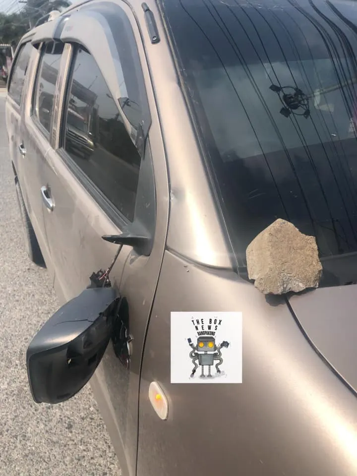 โดย เจ้าหน้าที่ตำรวจ สภ.บางปะกง ได้รับเเจ้งเหตุ เข้าตรวจสอบเหตุรถยนต์ถูกก้อนหิน ปาเข้ากระจกได้รับบาดความเสียหาย บริเวณหน้าเทศบาลตำบลบางวัว ถนนจรัญยานนท์ หมู่14 ต.บางวัว อ.บางปะกง พบ รถกระบะ โตโยต้า วีโก้ สีบรอนซ์ ทอง กระจกมองข้างฝั่งขวาแตกเสียหาย พร้อมพบก้อนหินขนาดใหญ่