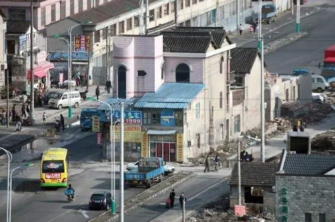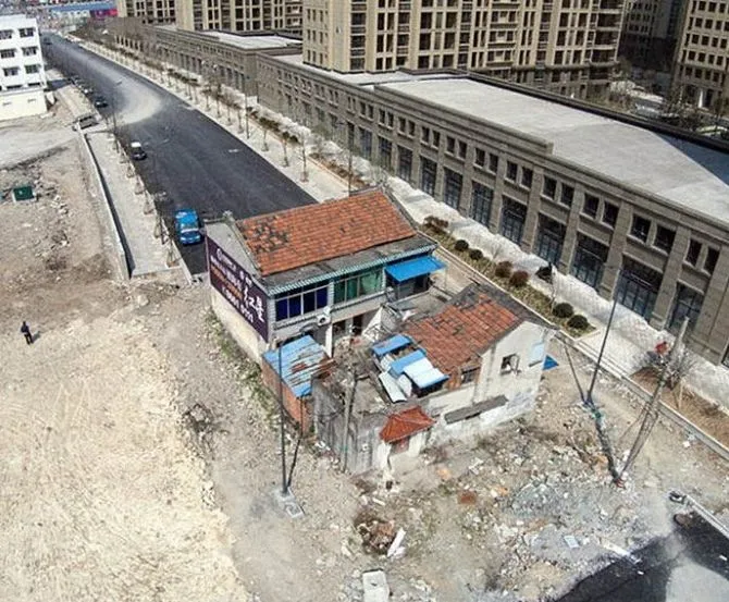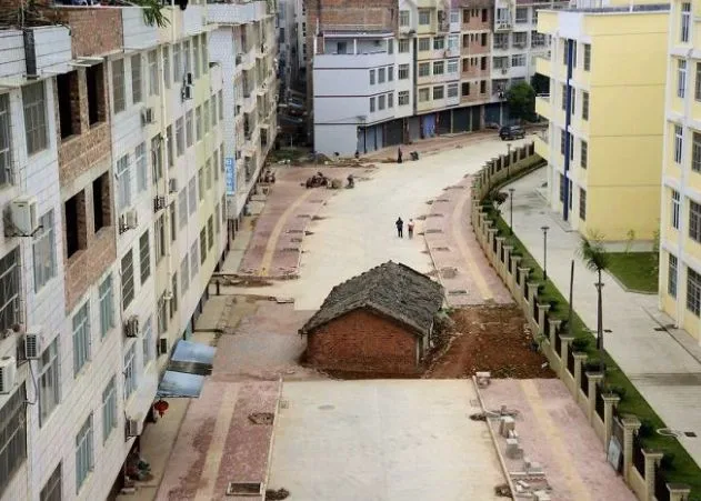 14.บ้านท่ามกลางถนนหลังนี้หัวดื้อสุดๆ รัฐบาลจีนได้ตัดถนนหลวงผ่านรอบบ้านหลังนี้ ถึงแม้เจ้าของบ้านจะย้ายออกไปก็ตาม แต่เขาไม่ยอมขายบ้านและปล่อยมันทิ้งไว้เพื่อเป็นสัญลักษณ์ของการต่อต้านการสร้างถนนแห่งนี้