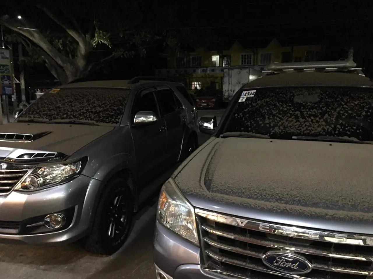 เถ้าถ่านปกคลุมบ้านเรือนประชาชนและรถยนต์ ที่อยู่ย่านปารานาคิว ชานเมืองหลวงของมะนิลา