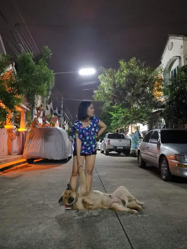 น้องหมาหนีออกจากบ้าน เจ้าของตามจับได้ก็นอนประท้วง จึงต้องหอบเข้าบ้านทุลักทุเล