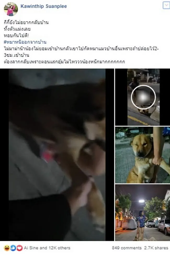เรื่องราวที่กลายเป็นกระแสบนโลกออนไลน์ เมื่อผู้ใช้เฟสบุ๊คชื่อว่า Kawinthip Suanplee ได้โพสต์เรื่องราวลงในกลุ่มรักหมาว่า “กีกี้ยังไม่อยากกลับบ้าน ทิ้งตัวซะเลย หอบกันไปดิ หมาหนีออกจากบ้าน ไม่ดราม่านะน้องไม่ยอมเข้าบ้านกลัวเขาไปกัดหมาแมวบ้านอื่น ต้องลากกลับเพราะตอนแรกอุ้มไม่ไหวน้องหนักมาก”