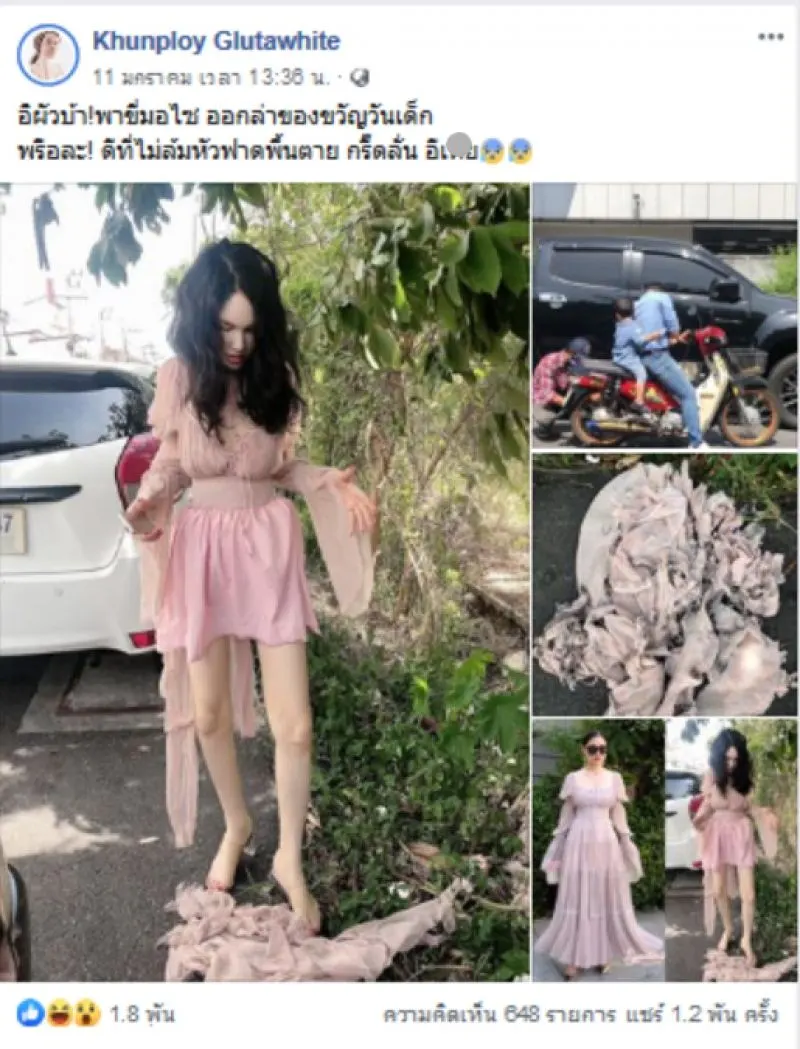 เรียกได้ว่าเป็นเรื่องราวที่มีคนต่างเข้ามาแสดงความคิดเห้นกันเป็นจำนวนมาก สำหรับเก็บตกวันเด็กที่ผ่านมา ต้องบอกเลยว่าไม่ใช่แค่น้องๆเท่านั้นที่แฮปปี้และอยากได้ขนม แต่ก็มีผู้ใหญ่บางคนก็แฮปปี้และมีความสุขเช่นกัน อย่างเช่นสาวรายหนึ่งที่แฟนพ่ขี่มอไซต์ไปเอาของขวัญวันเด็ก แต่เนื่องจากชุดที่ใส่ไปพักับลฃ้อรถงานนี้เลยทำเอาหัวร้อนขึ้นมาทันทีเลยจ้า โดยในเฟสบุ๊คที่ใช้ชื่อว่า Khunploy Glutawhite ได้โพสต์ภาพพร้อมข้อความระบุว่า อิผัวบ้า พาขี่มอไซ ออกหาของขวัญวันเด็ก