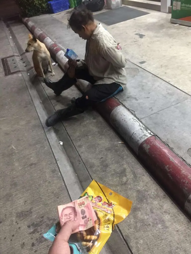เมื่อกี้นั่งกินขนมอยู่ในเซเว่น มองออกมาเจอลุงคนหนึ่งนั่งนับเหรียญและเข้าก็เดินไปซื้อนมมานั่งกิน. บีมเลยนั่งอยู่สักพักว่าเค้าจะทำไรต่อ หลังจากนั้นเทนมลงที่พื้นและแบ่งให้น้องหมากินด้วย ในใจบีมไม่คิดอะไรเลยเดินไปหยิบขนมมาพร้อมกับเงิน100บาท ขนาดเค้าไม่ค่อยมีเค้ายังแบ่งเลยนับถือน้ำใจคุณลุงเลยครับ