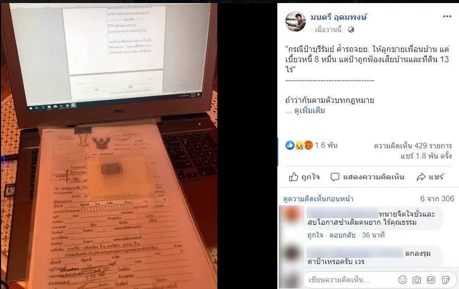 ต่อมา มนตรี อุดมพงษ์ นักข่าวชื่อดังได้โพสต์ความคืบหน้าเกี่ยวกับกรณีดังกล่าวลงในเฟซบุ๊กส่วนตัวว่า “”กรณีป้าบุรีรัมย์ ค้ำรถจยย. ให้ลูกชายเพื่อนบ้าน แต่เบี้ยวหนี้ 8 หมื่น แต่ป้าถูกฟ้องเสียบ้านและที่ดิน 13 ไร่ ถ้าว่ากันตามตัวบทกฎหมาย ทนายความ ที่ซื้อทรัพย์ คือบ้าน และที่ดิน รวม 13 ไร่ ของป้าชาวบุรีรัมย์ ด้วยเงิน 3 แสน 4 หมื่นบาท และรับภาระหนี้ ธกส. อีก 8 แสนบาทนั้น ถือว่า ไม่ผิดกฎหมาย
