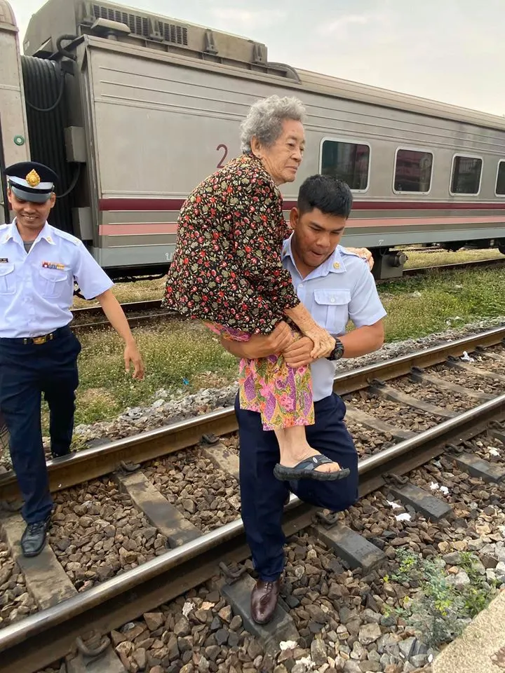 คุณยายเดินทางด้วยรถไฟ เจอทางชันเดินไม่ไหว พนง.หนุ่ม รีบเข้ามาช่วยอุ้มทันที