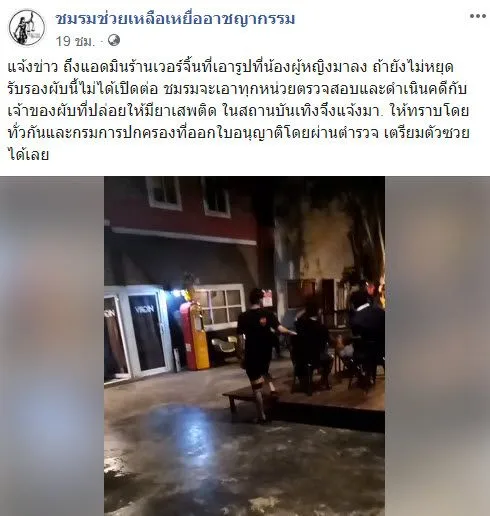 โดยก่อนหน้านั้นทางเพจ ชมรมช่วยเหลือเหยื่ออาชญากรรม ได้ออกมาโพสต์แฉร้านนี้ว่า “หน่วยงานของรัฐว่าไง! ตามคลิปดังกล่าว คือ ร้านเวอร์จิ้น (VIRGIN) ริมถนนสุวรรณศร สายหินกอง-นครนายก อ.หนองแค จ.สระบุรี เปิดให้กลุ่มวัยรุ่นเข้าใช้บริการโดยไม่ตรวจบัตรประจำตัวประชาชน และยังให้เด็กอายุต่ำกว่า 20 ปี เข้าใช้บริการ จากการตรวจสอบพบว่า ได้มีทำห้องสำหรับปาร์ตี้ยาเสพติดให้บริการถึงเที่ยงของวันรุ่งขึ้น