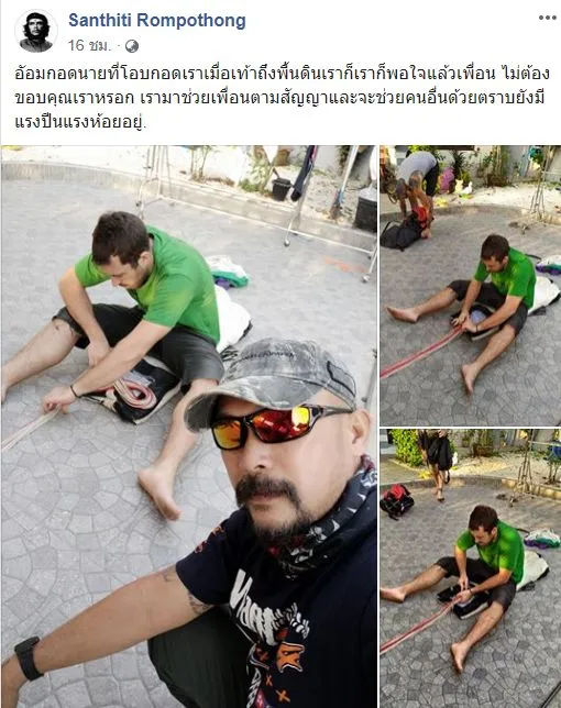 โดยฮีโร่ที่เข้าช่วยนาย โจฮันเนส ยังได้โพสต์ข้อความระบุถึงนายโจฮันเนส ว่า… อ้อมกอดนายที่โอบกอดเราเมื่อเท้าถึงพื้นดินเราก็เราก็พอใจแล้วเพื่อน ไม่ต้องขอบคุณเราหรอก เรามาช่วยเพื่อนตามสัญญาและจะช่วยคนอื่นด้วยตราบยังมีแรงปีนแรงห้อยอยู่