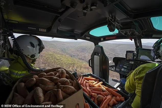 รายงานระบุว่า แครอท และมันฝรั่งหวานจำนวนหลายพันกิโลกรัม ถูกโปรยลงมาจากท้องฟ้าในแถบ Wallaby Rock ในหุบเขา Capertree และ Wolgan อุทยานแห่งชาติ Yengo หุบเขา Kangaroo และรอบ ๆ Jenolan แม่น้ำ Oxley Wild รวมไปถึงอุทยานแห่งชาติ Curracubundi
