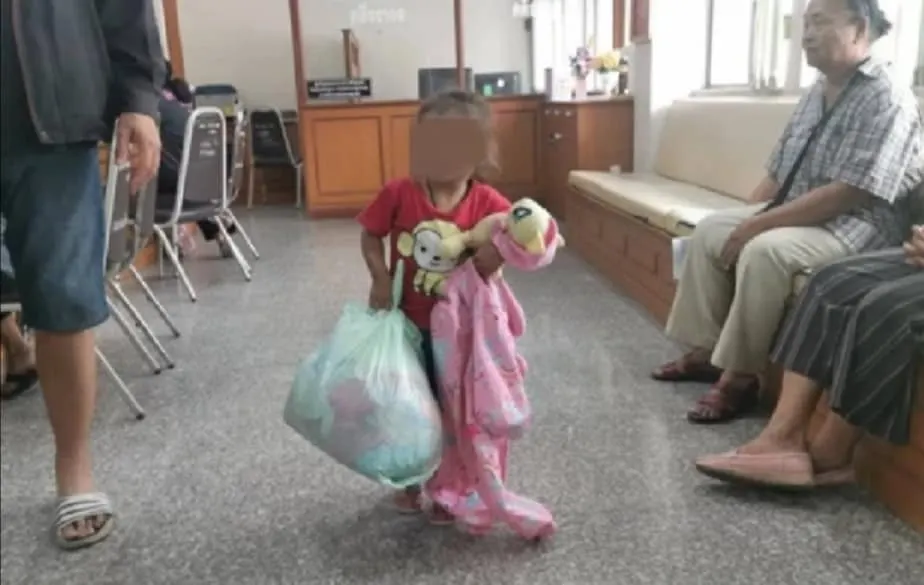 เด็กหิ้วถุงพลาสติกในถุงนั้นมีเครื่องใช้เสื้อผ้าเด็กพร้อมกับตุ๊กตาน่ารักอีก 1 ตัว เจ้าหน้าที่สำรวจตามเนื้อตัวเด็ก มีร่องรอยเขียวช้ำหลายแห่ง เหมือนถูกทำร้าย และมีเชือกร่มห้อยพระสมเด็จอีก 1 องค์ หลังจากเจ้าหน้าที่ตำรวจลงบันทึกประจำวันเสร็จเรียบร้อยแล้ว ทางพนักงานนักสังคมสงเคราะห์บ้านเด็กและครอบครัวจังหวัดลพบุรี จึงนำเด็ก ไปตรวจ ร่างกายที่โรงพยาบาล สมเด็จพระนารายณ์ ทันที