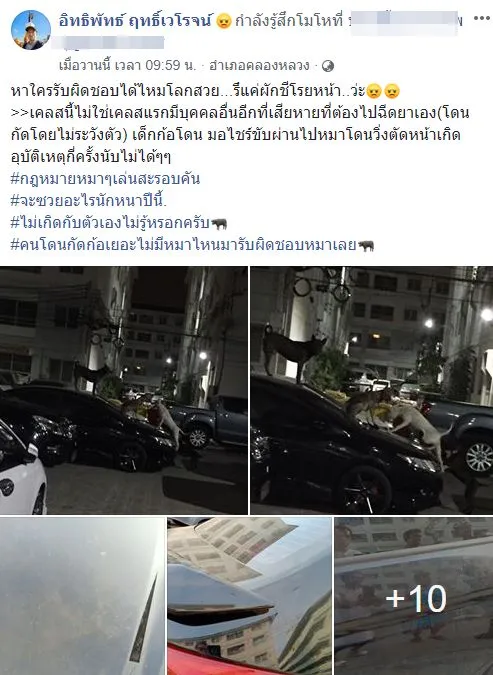 กลายเป็นอีกหนึ่งเรื่องหัวร้องหลังผู้ใช้เฟซบุ๊ก อิทธิพัทธ์ ฤทธิ์เวโรจน์ ออกมาโพสต์ภาพเหตุการณ์ขณะฝูงสุนัขกลุ่มหนึ่งกำลังจู่โจมรถเก๋งสีดำคันหนึ่ง และรถจยย. จนหมดสภาพ