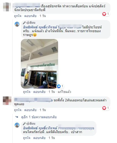 โดยผู้ใช้เฟซบุ๊กรายนี้กล่าวว่า หาใครรับผิดชอบได้ไหมโลกสวย…รึแค่ผักชีโรยหน้า..ว่ะ เคสนี้ไม่ใช่เคสแรกมีบุคคลอื่นอีกที่เสียหายที่ต้องไปฉีดยาเอง(โดนกัดโดยไม่ระวังตัว) เด็กก็โดน มอไชร์ขับผ่านไปหมาโดนวิ่งตัดหน้าเกิดอุบัติเหตุกี่ครั้งนับไม่ได้ๆๆ กฎหมายหมาๆเล่นชะรอบคัน จะซวยอะไรนักหนาปีนี้ไม่เกิดกับตัวเองไม่รู้หรอกครับ คนโดนกัดก็เยอะไม่มีใครมารับผิดชอบหมาเลย