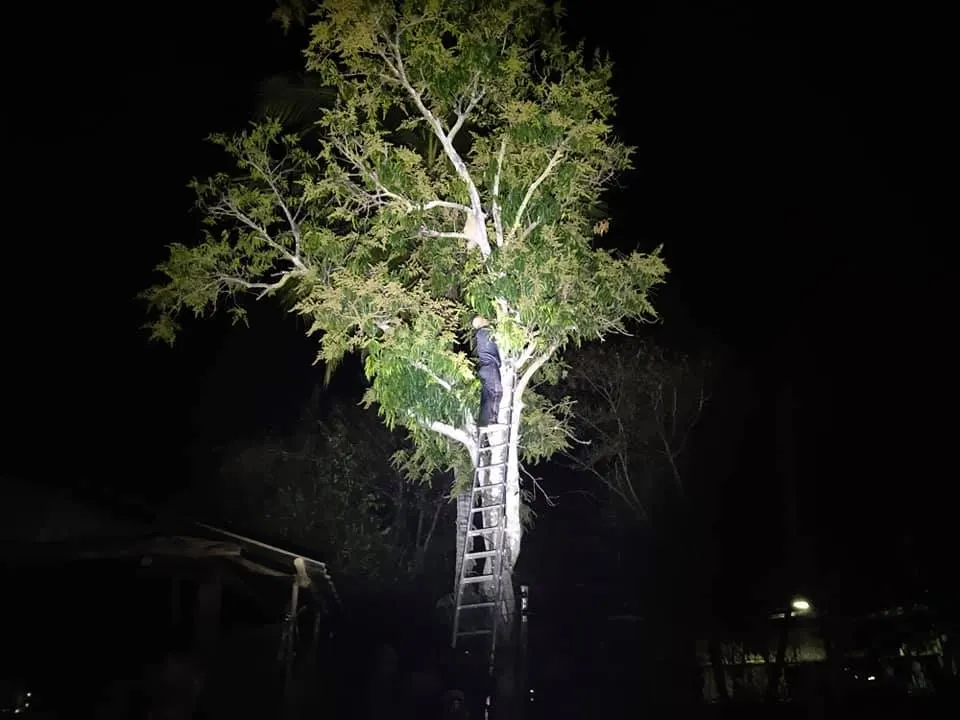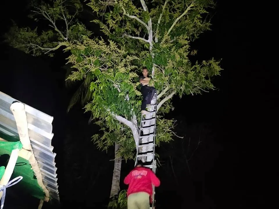 ตำรวจ กู้ภัยวิ่งกันให้วุ่น ได้รับแจ้งเหตุติดบนต้นไม้เพราะโดนหมาไล่