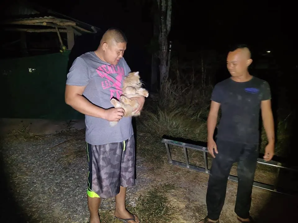ไม่ใช่อยากกินมะม่วง แต่หมาวิ่งไล่ ตกใจจึงวิ่งขึ้นต้นไม้แล้วลงเองไม่ได้ เจ้าหน้าที่ตำรวจสภ.บ้านม่วง ร่วมกับเจ้าหน้าที่วี.อาร์.กู้ภัยบ้านม่วง ช่วยกันนำเจ้าแมวเหมียวลงสู่อ้อมอกอ้อมใจผู้กองยักษ์ เหตุการณ์ปกติ