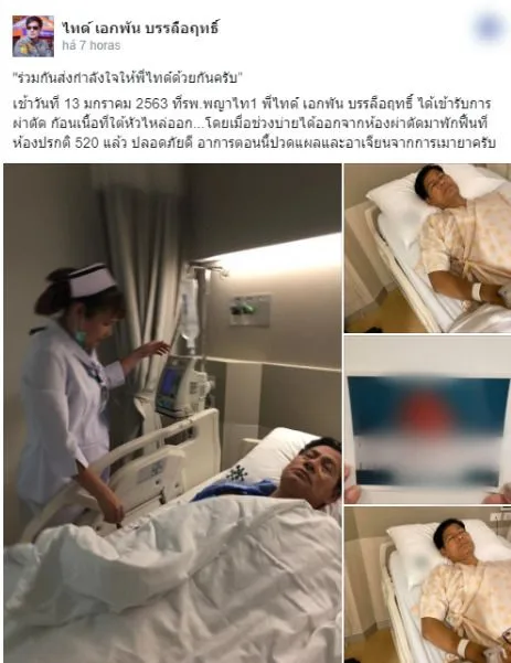 โดยเพจเฟสบุ๊ค ไทด์ เอกพัน บรรลือฤทธิ์ ก็ได้โพสภาพของ ไทด์ หลังจากการเข้ารับการผ่าตัด พร้อมระบุข้อความว่า