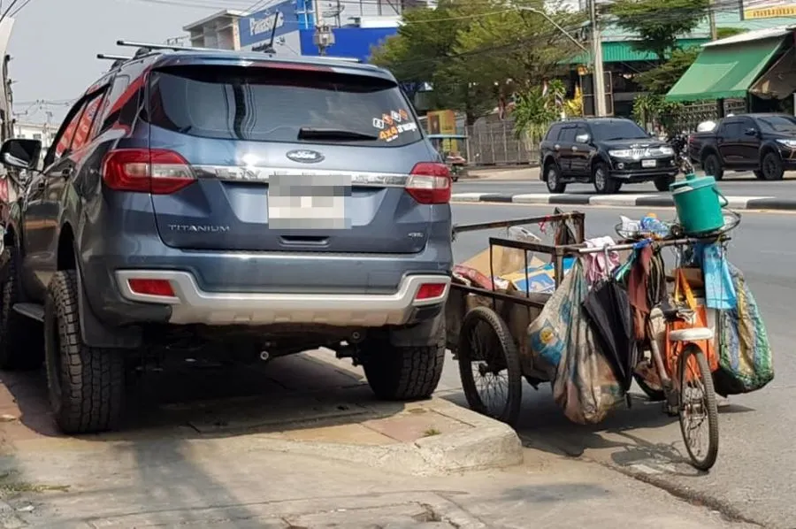เรื่องราวเกิดขึ้นบริเวณทางเท้าริมถนนเเห่งหนึ่ง โดยมีลุงขี่ซาเล้งเก็บของเก่า ได้จอดซาเล้ง เเล้วเดินมาถามรถหรูคันใหญ่ราคาเป็นล้านของหนุ่มรายหนึ่ง ก่อนเดินพิจารณาดูรอบๆ เเล้วควักมือถือขึ้นมาถ่ายรูปรถคันนั้นไว้ กลายเป็นเรื่องราวเสียดสี เชิงประชดประชัน กับพฤติกรรมการจอดรถของหนุ่มคนดังกล่าว
