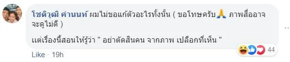 เเละก็มีคำชี้เเจงล่าสุดจากเจ้าของโพสต์ ผมไม่ขอแก้ตัวอะไรทั้งนั้น ( ขอโทษครับ ภาพสื่ออาจจะดูไม่ดี )เเต่เรื่องนี้สอนให้รู้ว่า อย่าตัดสินคน จากภาพ เปลือกที่เห็น