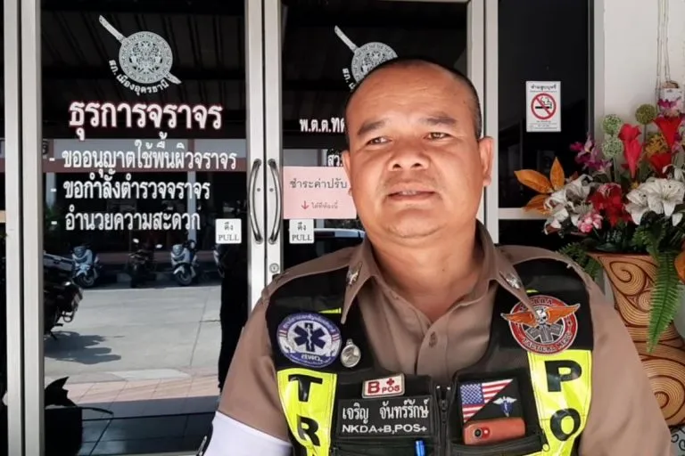 เมื่อเดินทางไปพบเจ้าหน้าที่ดังกล่าวคือ ด.ต.เจริญ จันทร์รักษ์ ผบ.หมู่ จร.สภ.เมืองอุดรธานี ได้เล่าว่า ผู้บังคับบัญชา ได้มอบหมายภารกิจ ได้ออกปฎิบัติหน้าที่อำนวยความสะดวกในการจราจรนักเรียนไปทัศนศึกษา จึงได้ขี่รถจักรยานยนต์ไปทางถนนเลี่ยงเมือง