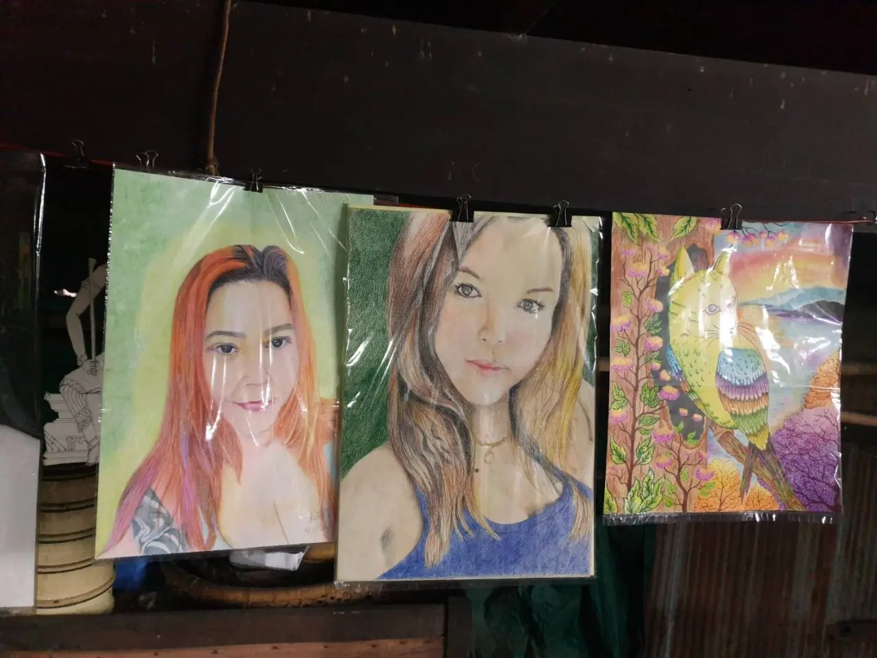 ภาพที่วาดเป็นภาพเหมือนบุคคล ภาพวิว ภาพศิลปะ ภาพล้อเลียน ทั้งขาวดำ และภาพสี ซึ่งจะวาดด้วยสีไม้ สีน้ำ สีน้ำมัน แล้วแต่ลูกค้าจะสั่ง ส่วนราคาก็ตามขนาดที่ลูกค้าสั่ง มีตั้งแต่ราคา 300-1,000 บาท