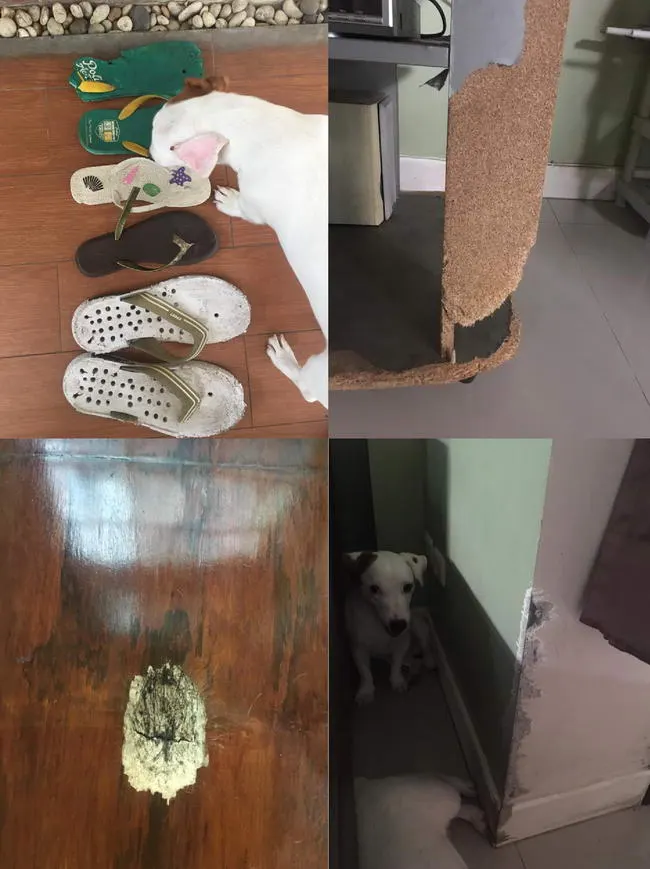 ผ้าเช็ดเท้าแทะทุกๆผืนไม่ซ้ำกัน สร้างสรรค์ผลงานจิ๊กซอร์ ไว้ให้พ่อกับแม่ มาต่อเล่นกัน หรือขอบประตู วงกบ ขอบบัว พื้นปาเก้ มุมเหลี่ยมผนัง ล้วนแต่มีรอยแทะ ลอกปูนลอกสีออกให้พ่อกับแม่ เหมือนเตือนว่า ช่างใช้ของไม่ดีให้บ้านเรานะพ่อ..จุดนี้ควรแก้ไข! และอื่นๆอีกมากมาย